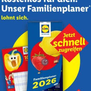Ab dem 06. Oktober 2025 startet Lidl wieder mit der beliebten Aktion: Der Familien-Planer für 2026 liegt kostenlos in den Filialen bereit.