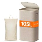 - Großes Fassungsvermögen: Mit den Abmessungen 43x33x75cm und einem Volumen von 105L bietet dieser Wäschekorb mit Deckel ausreichend Platz für 4-5 Waschladungen oder die Wochenwäsche – bei minimalem Platzbedarf