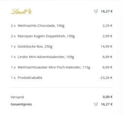 [Lindt] 75% auf Kalender / 50% auf alle Weihnachtsartikel + 70g Nikolaus for Free | VSK frei ab 15€ | Weitere 5%/10% ab 50€/100€ MBW.