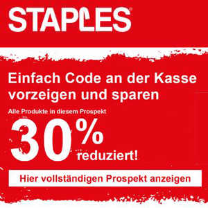 *Lokal* Staples: 30% Rabattcode auf alles (nur in Hamburg und Lüneburg)