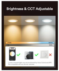 - Laden Sie die APP „Lumary“ oder „Smart Life“ herunter, verbinden Sie sich mit Wi-Fi, um Ihre intelligente Steuerung zu starten (Nur kompatibel mit 2,4-GHz-WLAN). Fernsteuern Sie das Deckenspots über die APP; die Grupenfunktion steuert mehrere LED Einbaustrahler gleichzeitig; Erstellen Sie Ihren eigenen Zeitplan zum Ein- und Ausschalten des LED Einbauspots; Teilen Sie andere Geräte, um die Einbaustrahler LED Flach gemeinsam zu steuern.
