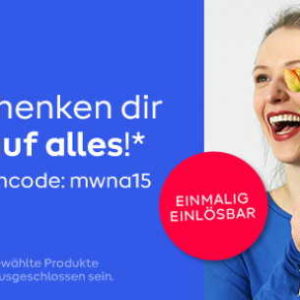 Achso. Ihr braucht den Gutscheincode mwna15. Den gebt Ihr an der Kasse ein.
