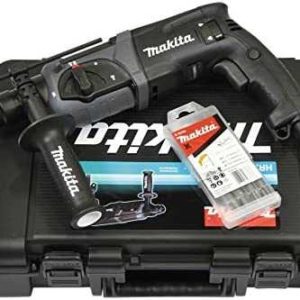 Der Makita Kombihammer HR2470BX40 ist das Jubiläumsmodell mit schwarzem Gehäuse. Er eignet sich zum Bohren, Hammerbohren und Meißeln. Der Kombihammer ist leicht und effektiv. Mit SDS-PLUS-Schnellwechselfutter und hoher Einzelschlagstärke für schnellen Bohrfortschritt und hohe Abtragleistung bei Meißelarbeiten überzeugt er außerdem mit einer Sicherheitsausrastkupplung zum Schutz von Anwender und Maschine sowie elektronisch regelbarer Dreh- und Schlagzahl. Er wird inklusive eines fünfteiligen Bohrersortiment SDS+ geliefert.