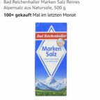 Bei Amazon bekommt ihr das Bad Reichenhaller Alpensalz 500g ohne Dose für 0,68€. Derzeit 14% Rabatt, Vergleichspreis gibt es zb. bei Edeka, dort kostet es 0,79€.