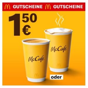 Noch bis zum 01.10.2024 kostet bei McDonald’s ein großer Kaffee oder ein großer Cappuccino mit dem entsprechenden Gutschein nur 1,50 Euro (statt 3,79 Euro / 4,29 Euro). Der Gutschein ist auch in der McDonald’s-App zu finden und bis zum Ablaufdatum täglich bis zu 100x pro Tag einlösbar.