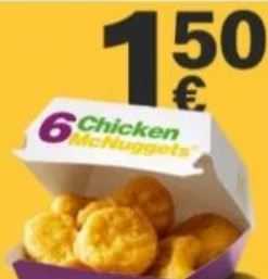 Mit der McDonalds App bekommt ihrr 6 Chicken McNuggets gerade für 1,50€. Regulär zahlt man (glaube ich) etwa 2,50€ dafür.