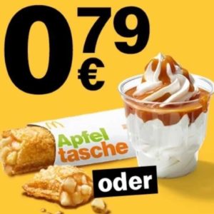 Mit der McDonalds App bekommt man aktuekk eine Apfeltasche oder ein McSundae für 0,79€. Der Coupon ist bis 27.01. gültig.