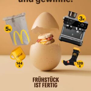 McDonald’s Gewinnspiel: Knack das Frühstücksei mit über 1 Mio. Sofortgewinnen z. B. kostenlose Frühstücksprodukte