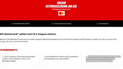 Mediamarkt Mastercard® zahlen und 20 € Coupon sichern