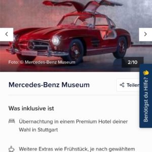 Es gibt wieder ab 48 Euro ein paar Termine für das Mercedes Benz Museum in Stuttgart inklusive einer Übernachtung in einem Hotel .