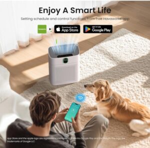 - APP-fähige WLAN-Fernsteuerung: Mit der „Havaworks“ App können Sie Ihren Luftreiniger ganz einfach in ein intelligentes Fernbedienungsgerät verwandeln. Aktive Zeitpläne einstellen, Betriebsparameter manuell anpassen sowie Raumluftqualität und Luftreiniger Filterlebensdauer in Echtzeit überwachen. Verwalten Sie den Betriebszustand des Luftreinigers bequem aus der Ferne, ohne sich dem Gerät nähern zu müssen