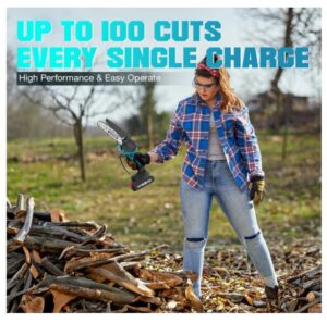 - Die kabellose Mini-Kettensäge wiegt nur 1,17 kg. Ultraleichter Körper, kleine Größe, bequem zu halten, leicht überallhin mitzunehmen. Einfache Bedienung: Sie müssen die Sicherheitssperre drücken, bevor Sie die Mini-Kettensäge verwenden, und dann den Auslöser drücken, um sie zu benutzen.