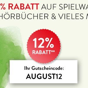 Mit AUGUST12 12% Rabatt auf Spielwaren, Filme, Musik, Hörbücher u.v.m. bei Hugendubel