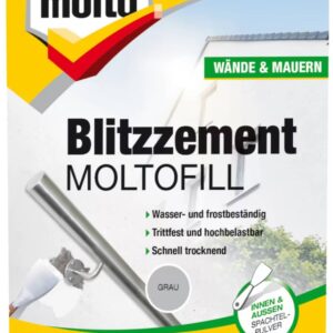 Mit Molto Blitzzement Motofill können Sie einfach und sicher Metallgeländer, Fenstergitter, Scharniere und vieles mehr im Innen- und Außenbereich verankern und einzementieren. Anwendungsbereiche: alle festen und tragfähigen Untergründe wie z. B. Mauersteine, Kalk- und Zementputz, Beton und Estrich