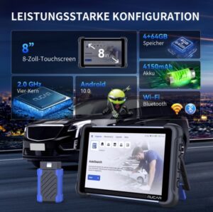 - Erweiterbar mit professionellen ToolsUnterstützt TPMS-Werkzeuge, Oszilloskope, Endoskope, Drucker und Bluetooth-Batterietester.