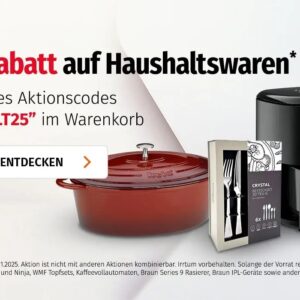 Ausgenommen sind: Artikel der Marken Shark und Ninja, WMF-Topfsets, Kaffeevollautomaten, Braun Serie 9 Rasierer, Braun IPL-Geräte sowie andere preisgebundene Artikel.