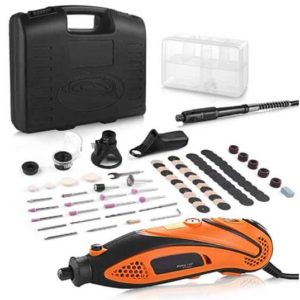 - 80 Zubehör für Ihre unterschiedlichen DIY Projekte. Das umfangreiche Zubehör dazu wird in einer kleinen durchsichtigen Plastikbox mitgeliefert, um die Ordnung einfach zu halten. Zusätzlich sind alle Aufsätze problemlos zu befestigen und zu wechseln