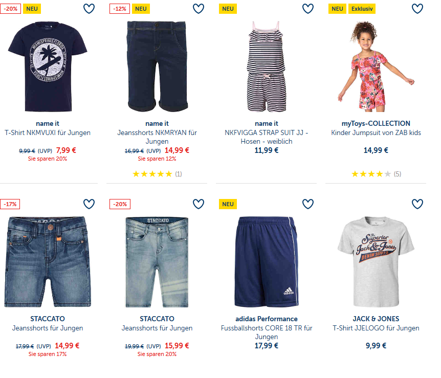 Bei myToys erhaltet man 20% Extra-Rabatt auf Sommermode für die Ganze Familie.