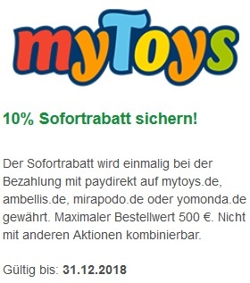 Die Versandkosten betragen 2,95 €. Gratis Versand bei Bestellung in zwei Shops (myToys, mirapodo, ambellis, yomonda) mit dem Gutscheincode GRATISVERSAND