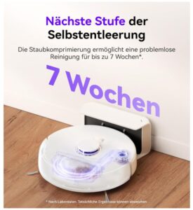 - 7 Wochen Staubaufbewahrung. Ausgestattet mit Staubkomprimierungstechnologie, speichert der Freo X Plus Saugroboter den Staub nach der Reinigung für bis zu 7 Wochen händefreien Komfort. Vermeidet Lärm, Verstopfungen und Gerüche.