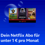 Für o2 Priority Kunden gibt es gerade das Netflix Standard-Abo mit Werbung für nur 0,99 € statt 4,99 € pro Monat für 3 Monate, monatlich kündbar.