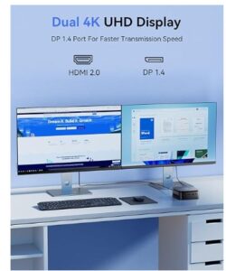 - 【Diverse Ports aufgerüstet】E1 ist mit einer HDMI-Schnittstelle und einer DP 1.4-Schnittstelle für eine schnellere Übertragung ausgestattet, ein Dual 4K@60Hz Bildschirme, E1 ist ideal für visuelle Heimunterhaltung, Home-Office, Konferenzräume usw. 2 USB 3.2 Gen 2-Anschlüsse mit einer Übertragungsgeschwindigkeit von bis zu 10 Gbps (21-mal schneller als USB 2.0) für eine effiziente Datenübertragung. Der RJ45 1000M-Anschluss sorgt für eine stabile Netzwerkverbindung.
