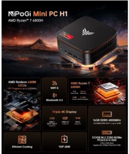 NiPoGi H1 Mini PC (AMD Ryzen 7 6800H, 16 GB DDR5, 512 GB NVM