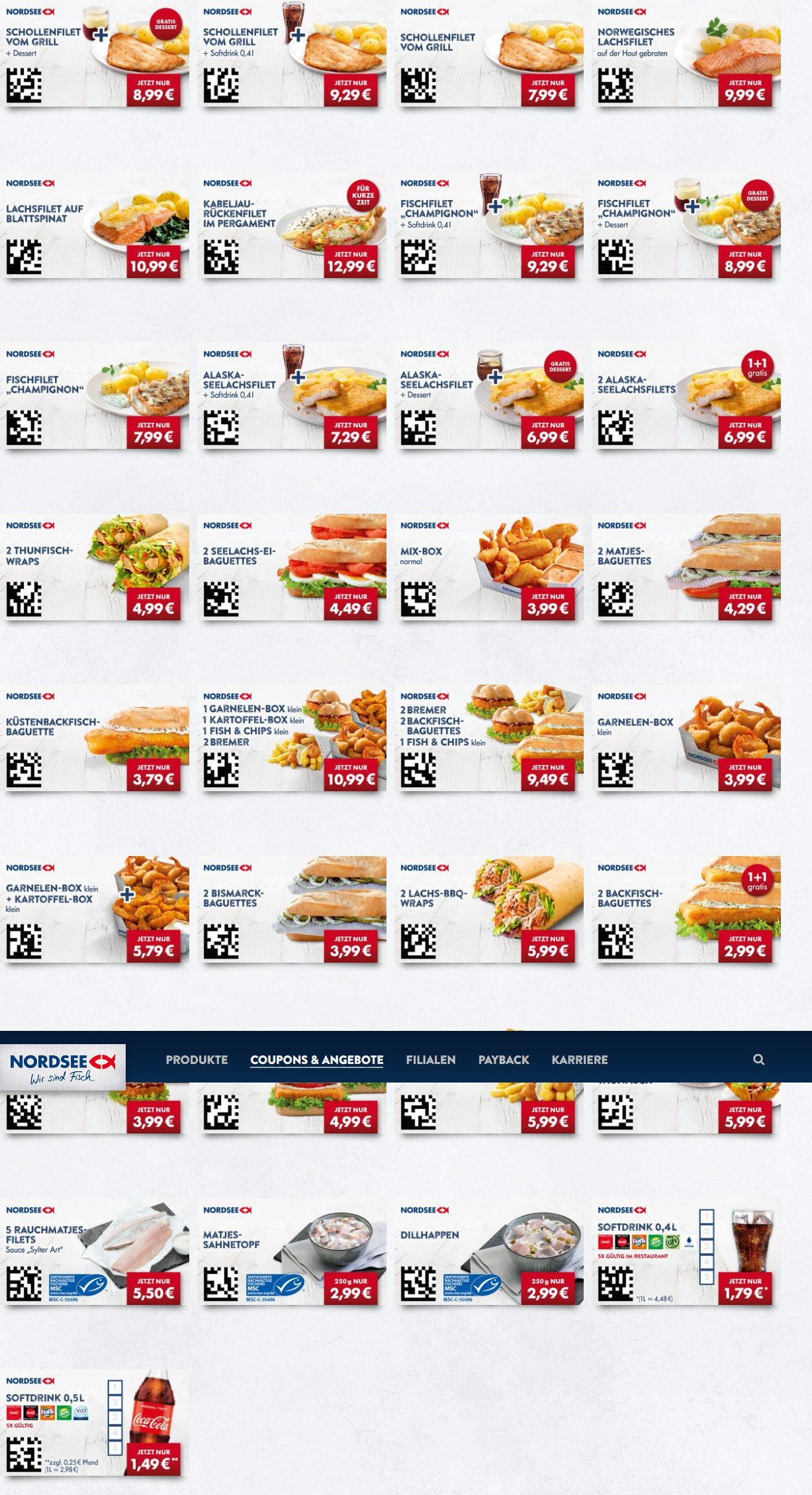 Es gibt wieder einmal NORDSEE Coupons bis zu 50% sparen zum Ausdrucken oder Per HandyAPP es sind z.B. wieder einige „2 für 1“-Angebote für Backfisch-Baguettes oder Mittagsmenüs dabei.