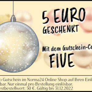 vielleicht ganz interessant. Im heutigen Adventskalendertürchen von Norma24 findet sich ein 5€ Rabattgutschein, der bereits ab einem Mindestbestellwert von 50€ gilt.