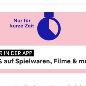 Denn jetzt könnt ihr noch schnell 15% auf Spielwaren (außer Tonies, Tonieboxen & -zubehör), Filme, Software, Schreibwaren, Hörbücher, nicht preisgebundene Bücher und Kalender abgreifen.