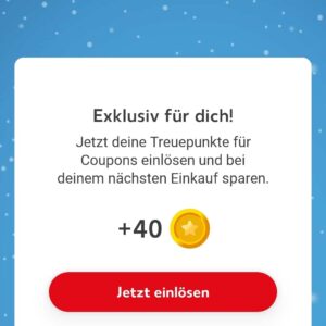 App öffnen, auf „Dein Geschenk des Tages“ klicken und über die 40 gratis Punkte freuen.