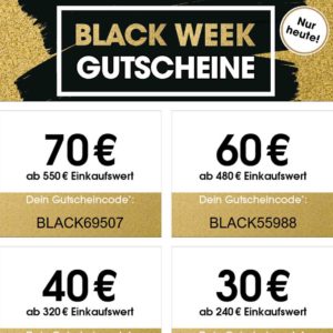 Nur heute Baybmarkt Black Week Gutscheinstaffel 10€ bis 70€