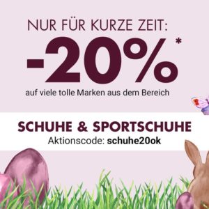Jetzt gibt es 20% Rabatt auf Schuhe und Sportschuhe.