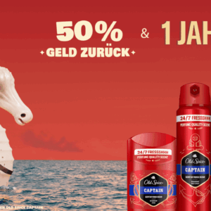 Wir haben tolle Neuigkeiten nur für dich! Beim Kauf eines teilnehmenden Old Spice Produktes (50-250ml) erhältst du zwischen dem 10. November bis zum 31. Dezember 2025 bei ForMe die Hälfte des Kaufpreises zurück!* Und das ist nicht alles: Unter allen Teilnehmenden verlosen wir zusätzlich 5 Jahresvorräte voller Old Spice Produkte. Eine super Gelegenheit, um deine Favoriten zu testen und dabei zu sparen!