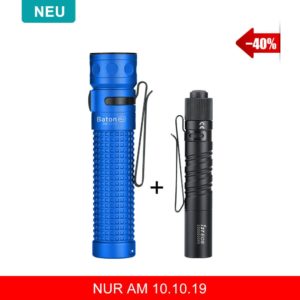 Im offiziellen Store von Olight erhaltet ihr nur heute zur Einführung der neuen Baton Pro in der Limited Edition einen Rabatt von 40% und eine I3T Taschenlampe in Schwarz GRATIS dazu. 🙂 Somit kommt ihr auf einen Preis von 85,14€ statt 141,90€. Kein Gutscheincode notwendig!
