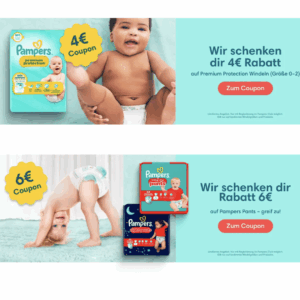 Pampers sind ja mittlerweile schon fast ein Luxus Produkt bei den gestiegenen Preisen, aber man kann ab und zu mal wieder ein Schnäppchen machen. Pampers bietet euch jetzt 2 Rabattcoupons an!