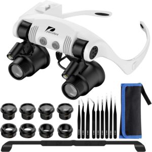 - [Vielseitig einsetzbar und häufig zusammen gekauft] Das Set aus Kopflupe und Präzisionspinzette eignet sich besonders für Näh-, Bastel-, Kosmetik-, Handarbeits-, Strick-, Kreuzstich-, Stick-, Mal-, Schmuck- und Laborarbeiten. Diese Kombination ist praktisch für den Kunden. Und das Brillendesign mit Linsenaufbewahrungsbox erleichtert die Reinigung der Linsen und erleichtert das Tragen.
