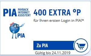 eCoupon aktivieren und auf der PAYBACK PIA Seite alle Vorteile der PIA entdecken. Einfach mit einem Klick die PIA in Ihrem Browser installieren und das erste Mal in PIA einloggen. Sollte die PIA bereits im Browser installiert sein, aber noch kein Login stattgefunden haben, einfach nach der eCoupon Aktivierung direkt über das PAYBACK Symbol im Browser bei PIA einloggen!