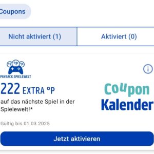 Payback Coupon Kalender (APP): 222 Punkte geschenkt für download eines Spiels und erreichen der minimal Punktestufe