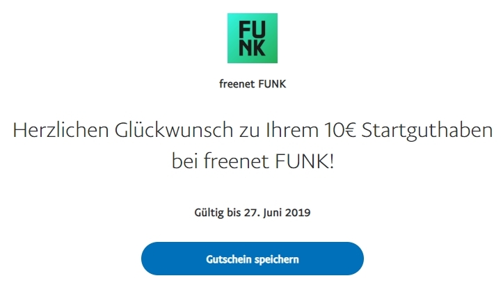 Mit PayPal bekommt ihr gerade 10€ Guthaben bei freenet FUNK. Speichert euch dazu unter dem Deallink den Gutschein.