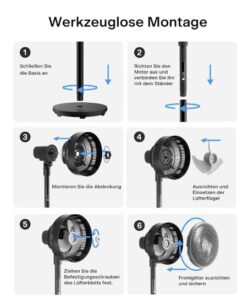 - Zweifache Höhenanpassung; Schnellumbau vom 60cm Tischventilator zum 111cm Standlüfter ohne Werkzeug, Optimal für klimatisierung von Home Office bis Wohnzimmer durch flexible Aufstellung