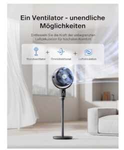 - Präzise Geschwindigkeitsanpassung 9 einstellbare Stufen and Turbo-Modus für sanfte Nachtbrise oder intensive Kühlung – Fernbedienung ermöglicht geräuschlose Steuerung aller Funktionen
