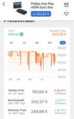 Bei Otto.de findet man die Philips Hue HDMI Sync Box für gerade mal 199,62€ (ggf. zzgl. 5,99€ Versand).
