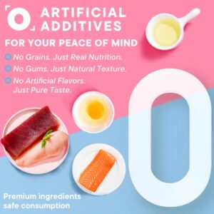 - Echte Null-Zusatzstoffe – Getreidefrei, gelatinefrei und ohne künstliche Aromen. Sanfte, natürliche Katzensnacks für empfindliche Mägen.