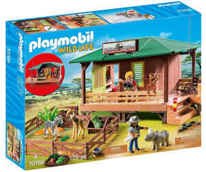 - Lieferumfang: 1x PLAYMOBIL Wild Life Rangerstation mit Tieraufzucht, 175-teiliges Spielfiguren-Set mit Anleitung: 1 Pflegestation, 2 Figuren, 1 Nashornbaby, 1 Giraffe, 1 Fohlen, 1 Schlange, 2 Affen, 166 Zubehörteile, Material: Kunststoff, LxTxH (Station ohne Zaun): 34,5x23x21 cm
