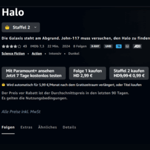 Wow, wer auf die Serie „Halo“ steht oder schon immer mal reinschauen wollte, kann sich jetzt super günstig Staffel 2 bei Amazon Prime Video sichern! 😀