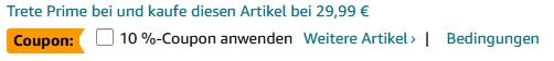 Update Dank dem zusätzlichen 10% Gutscheincode zum Anklicken nun sogar für nur 26,99€.