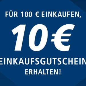 Von Donnerstag bis Samstag gibt es einen 10 € Einkaufsgutschein für alle Einkäufe ab einem Wert von 100 €.