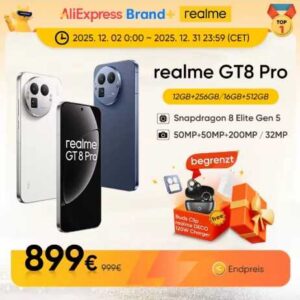 Gerade bei Aliexpress gefunden, dort bekommt ihr das realme GT 8 Pro 5G Smartphones mit Snapdragon 8 für 899€