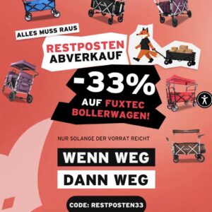 Seid ihr aktuell auf der Suche nach einem Bollerwagen. Dann habe ich hier für euch das richtige Angebot. Aktuell und nur noch bis zum 27.04.26, 33% Rabatt auf fast alle Bollerwagen von FUXTEC.